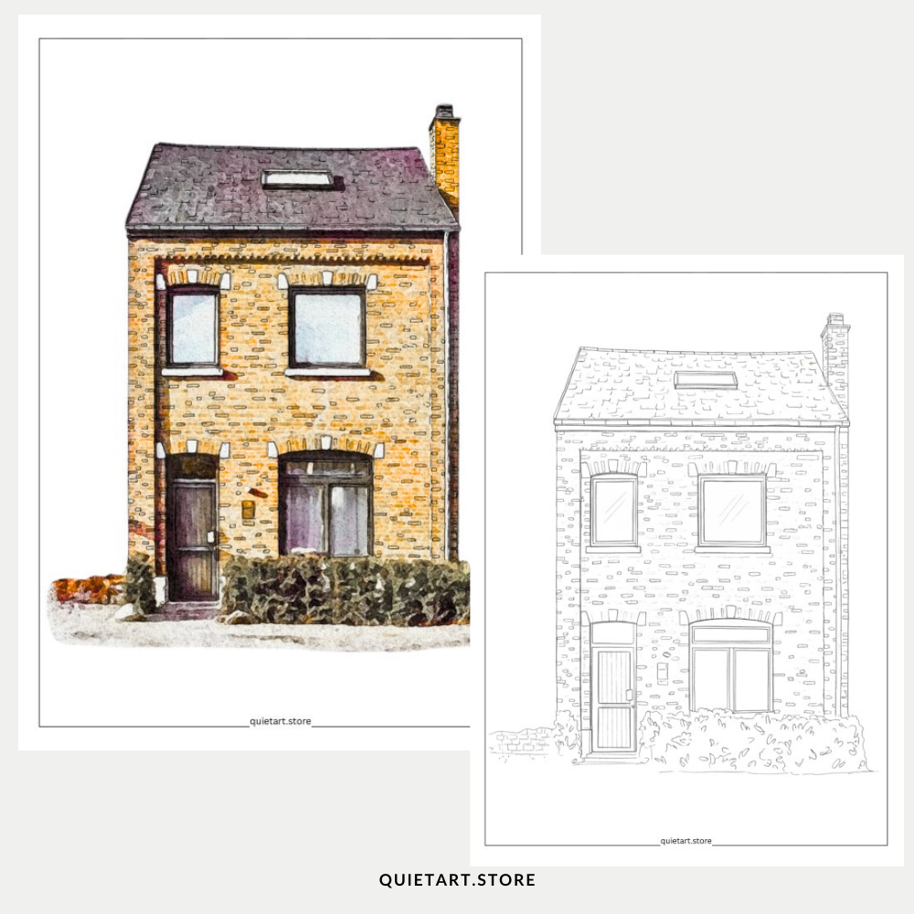 25 House Portrait Watercolor Printable Coloring Pages (PDF Download)